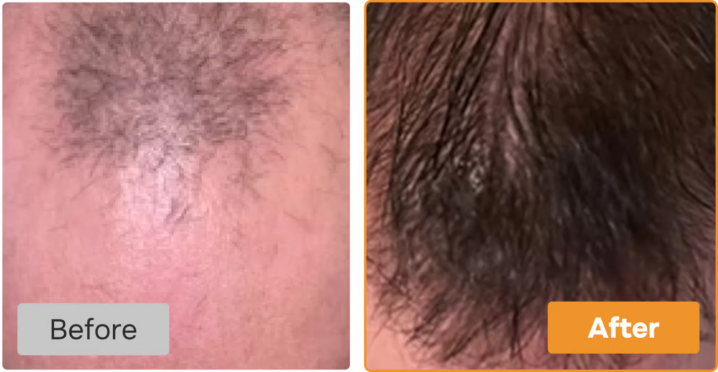 daw visible regrowth and thicker hair within 6 months.